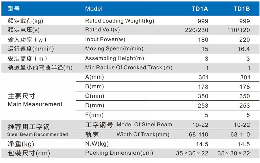 TD系列微型電動行車以電動機(jī)驅(qū)動,行走于工字鋼的軌道下緣處,配以電動葫蘆或手拉葫蘆便可組成橋式、單梁或懸臂式起重機(jī)。它廣泛地使用于工廠、礦山、碼頭、倉庫、建筑工地等用于安裝機(jī)器設(shè)備,吊運貨物的場合。